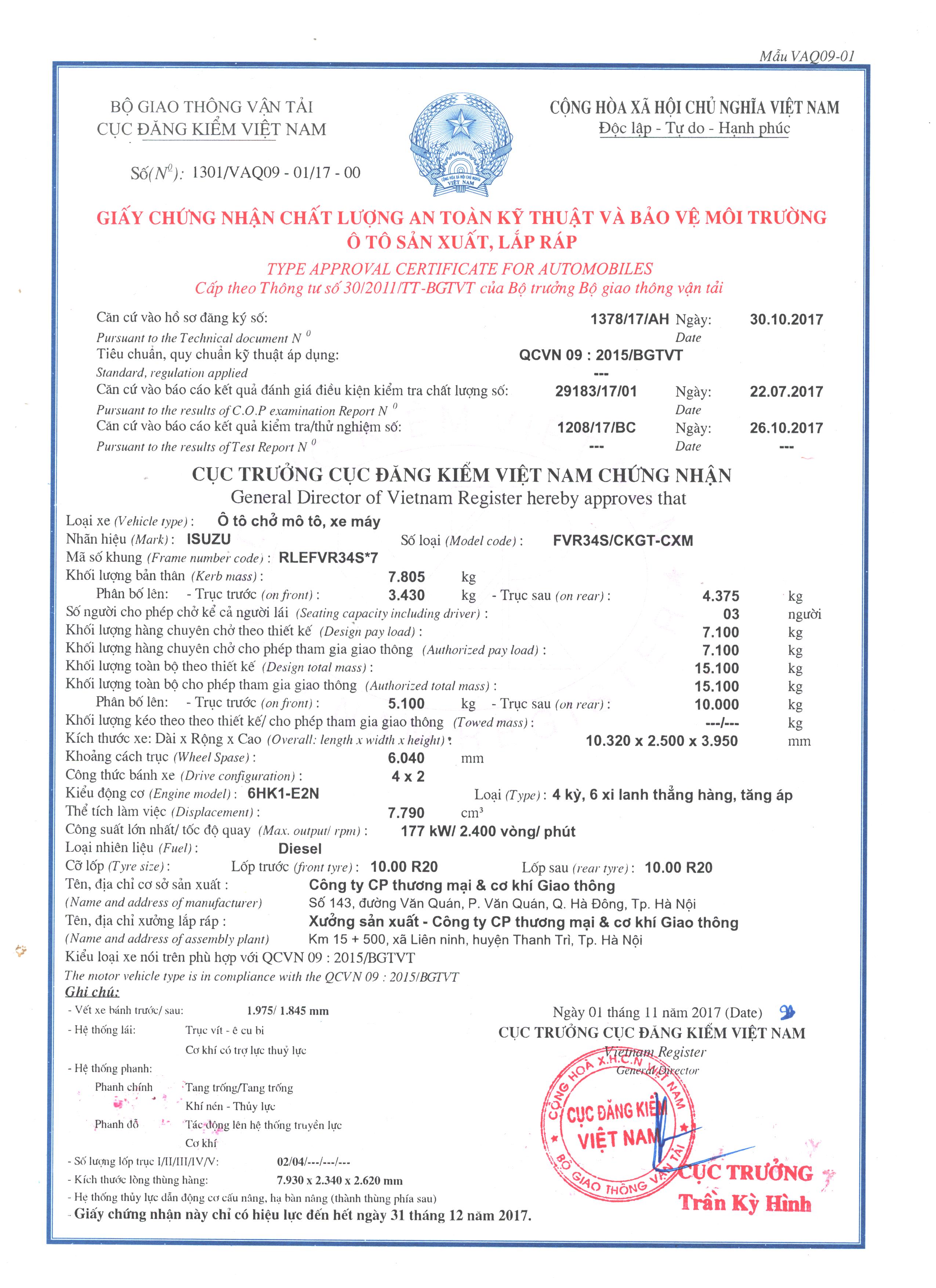 Ô tô chở mô tô, xe máy ISUZU FVR34S /CKGT-CXM