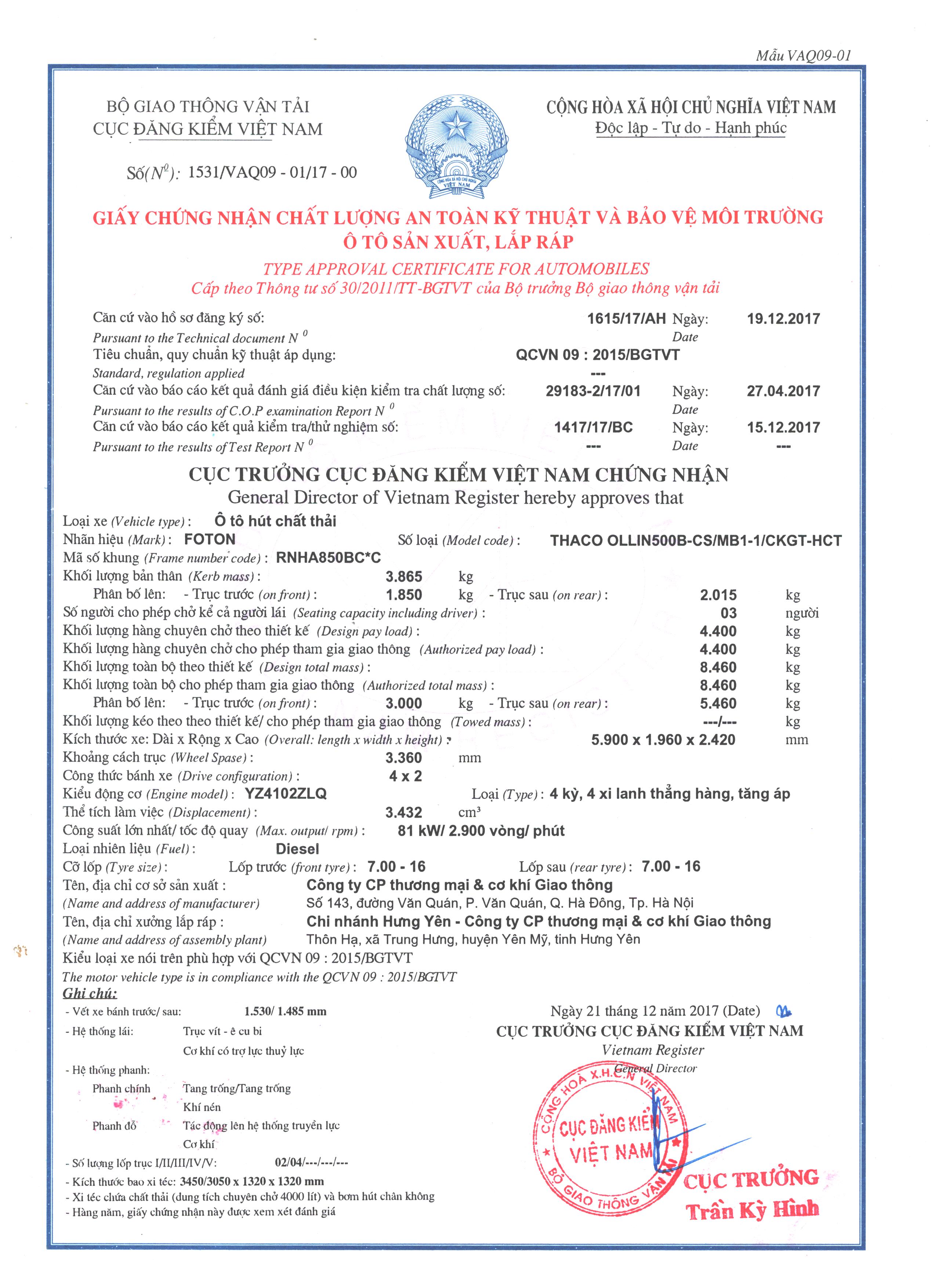 FOTON THACO OLLIN500B-CS/MB1-1/CKGT- HCT |