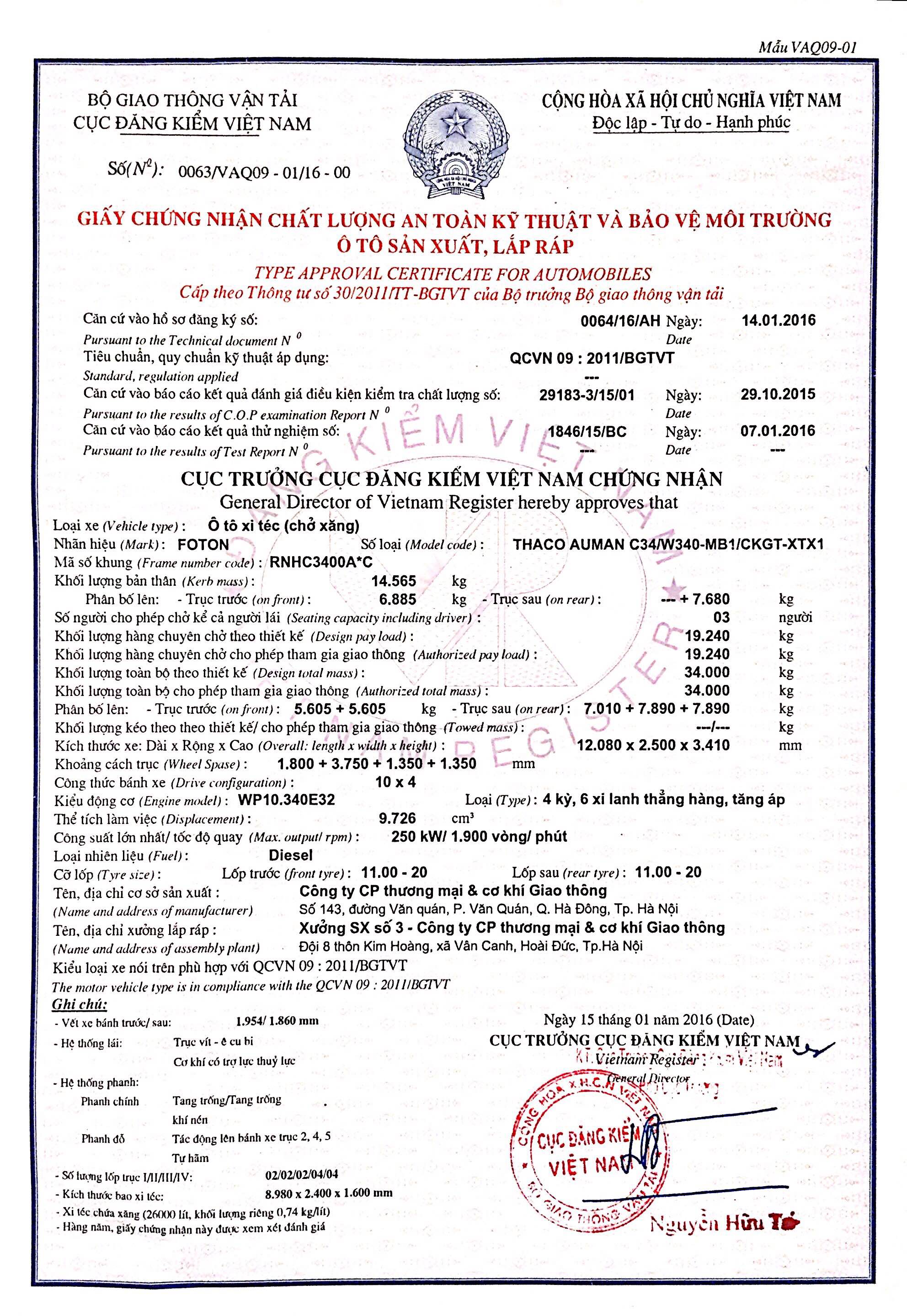 FOTON THACO AUMAN C34/W340-MB1/ CKGT-XTX1 |